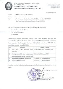 Fakultas Ekonomika dan Bisnis (FEB) Universitas Diponegoro menyampaikan Surat Edaran mengenai Pengembalian Uang Kuliah Tunggal (UKT) Semester Genap Tahun Akademik 2025/2026 bagi mahasiswa FEB Undip